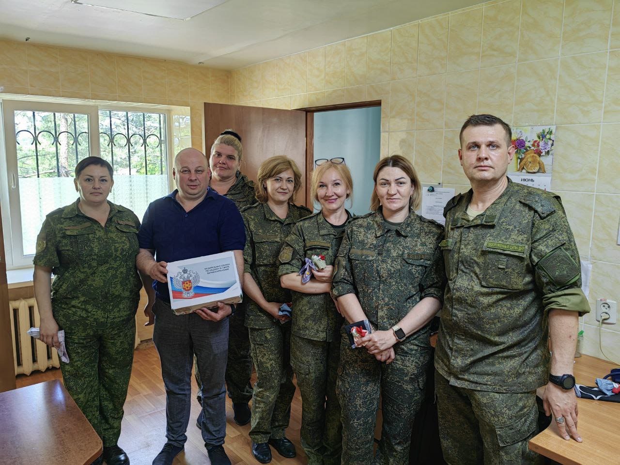 В преддверии Дня медицинского работника сотрудники Территориального органа Росздравнадзора по ДНР при участии Территориального органа Росздравнадзора по Ростовской области поздравили донецких медицинских работников и выпускников Донецкого Высшего Общевойского Командного Училища, которые сегодня отправились в свои роты и подразделения в качестве военных медиков.